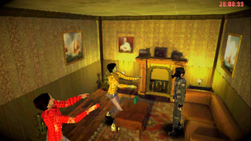 Vaccine Rebirth adopts a retro aesthetic with low-poly graphics, evoking the look and feel of PlayStation 1-era survival horror games. The mansion’s design is detailed, with atmospheric lighting and eerie sound design that heighten tension. The fixed camera angles add to the claustrophobic atmosphere, making every corner potentially dangerous. The game’s visual style pays homage to classic survival horror while introducing modern enhancements.